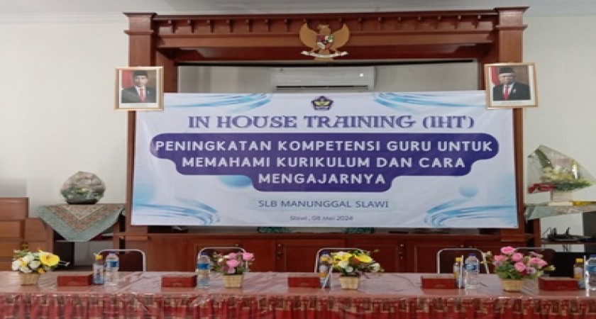 Pada tanggal 08 Mei 2024 telah dilaksanakan In House Training (IHT) Peningkatan Kompetensi Guru Untuk Memahami Kurikulum dan Cara Mengajarnya dengan narasumber Bapak Dr. Joko Yuwono, M.Pd Kaprodi S2 Pendidikan Luar Biasa UNS disamping itu beliau juga pakar menangani anak-anak autisme didalam paparannya beliau saharing tentang teori dan praktek untuk menangani anak-anak autisme khususnya yang bersekolah di SLB , IHT diikuti oleh dewan guru , karyawan dan instruktur.