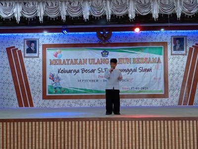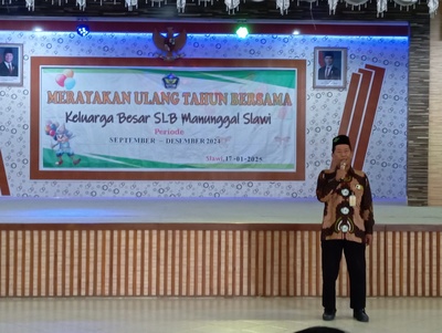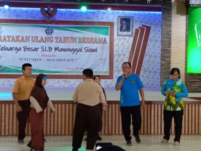 Pada hari Jum'at tanggal 17 Januari 2025 telah dilaksanakan acara Merayakan Ulang Tahun Bersama Keluarga Besar SLB Manunggal Slawi Periode September - Desember 2024 yang diikuti oleh segenap warga sekolah mulai dari siswa , dewan guru , yayasan , office boy acara diisi dengan pembacaan nama-nama yang berulang tahun , pemotongan kue ulang tahun , penyerahan kado , penampilan hiburan dari perwakilan siswa dan dewan guru ditutup dengan do'a dan salam - salaman pengucapan selamat kepada yang berulang tahun.