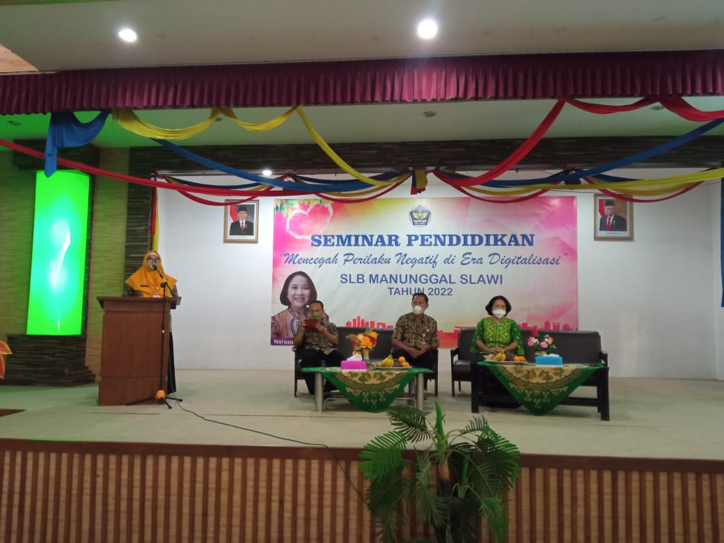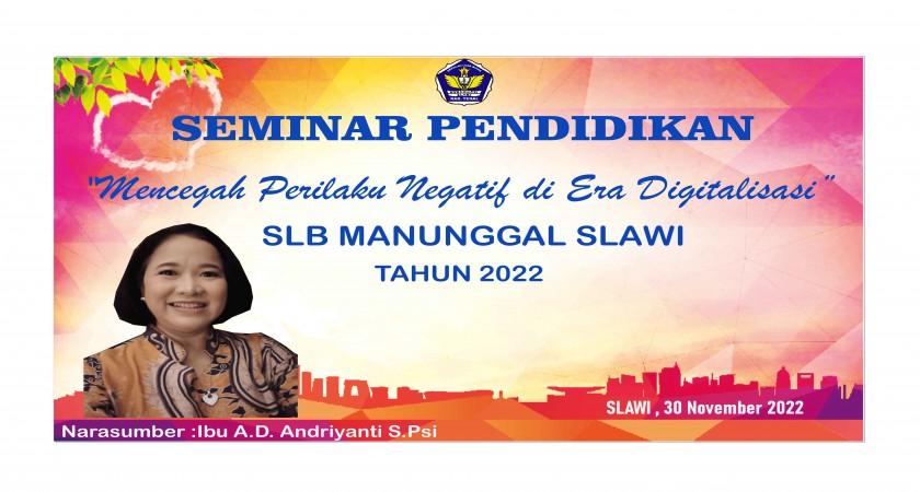Pada tanggal 30 November 2022 telah dilaksanakan Seminar Pendidikan "Mencegah Perilaku Negatif di Era Digitalisasi" yang diikuti oleh siswa - siswi SMPLB dan SMALB bagian B , C dan C1 dengan narasumber : Ibu A.D Andriyanti S.Psi M.Psi dari RSUD Kardinah Kota Tegal
